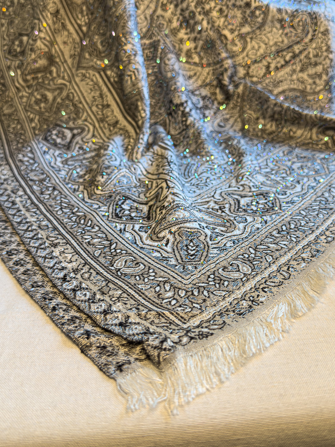 Soft honey gold, Sweet and luminous. That shawl that warmswith subtlety. This variation features hand-applied...