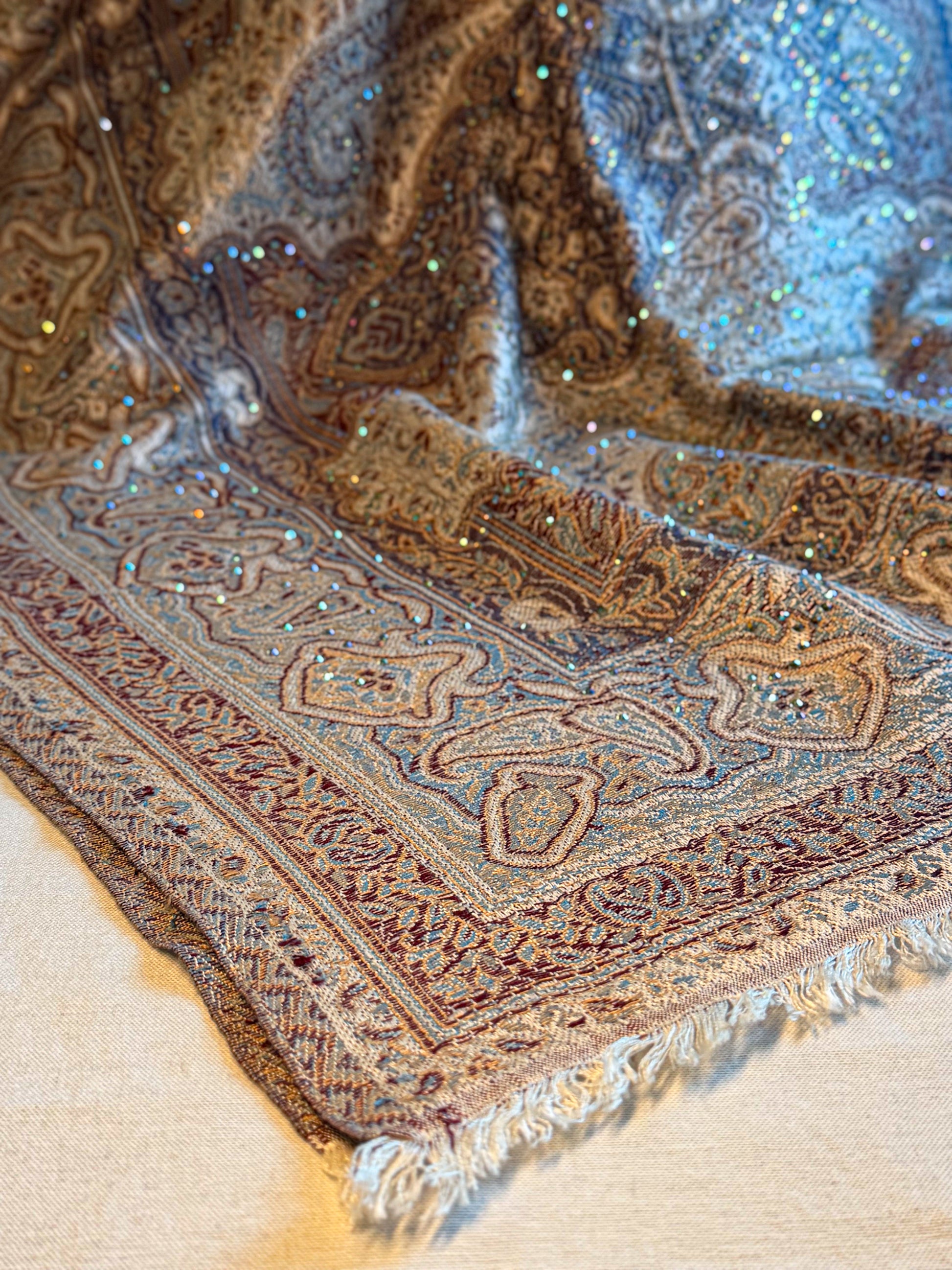 This variation features hand-applied crystals that create a luminous, sparkling effect. The photos do not fully capture their brilliance the shine is even more breathtaking in person.